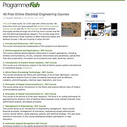 Electrical engineering is a field of engineering that generally deals with the study Transmissions across free space require information to be encoded in a carrier signal to shift the information to a MIT OpenCourseWare in-depth look at Electrical Engineering - online courses with video ... Read Article